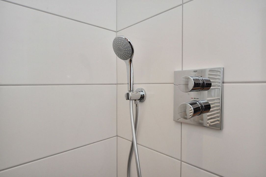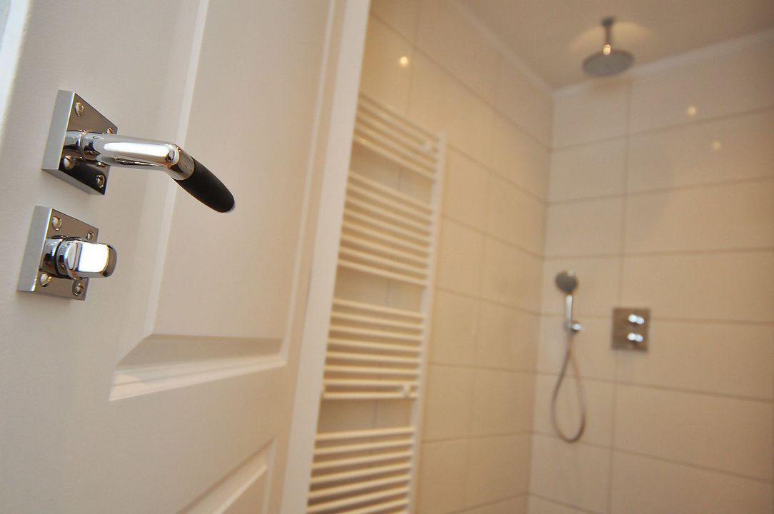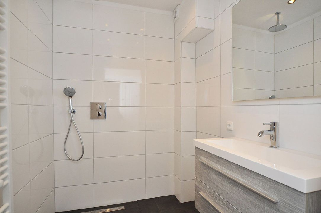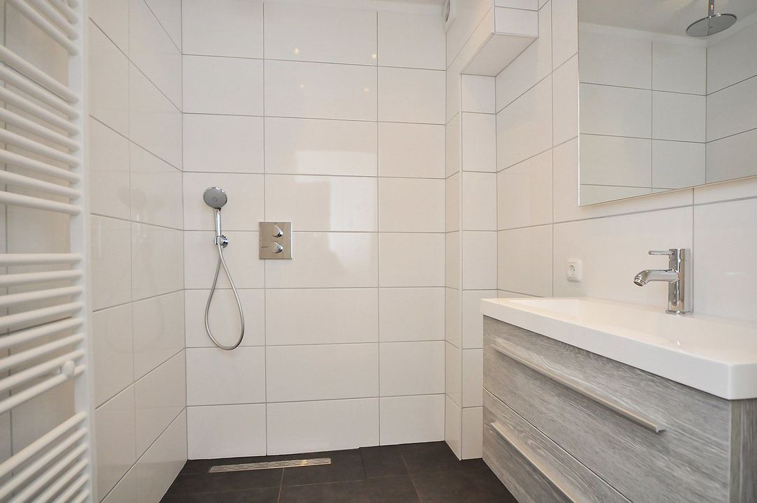 - Luxe badkamer, inloopdouche en wastafel, handdoeken radiator, rainshower;