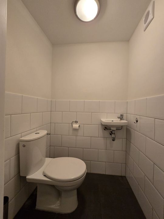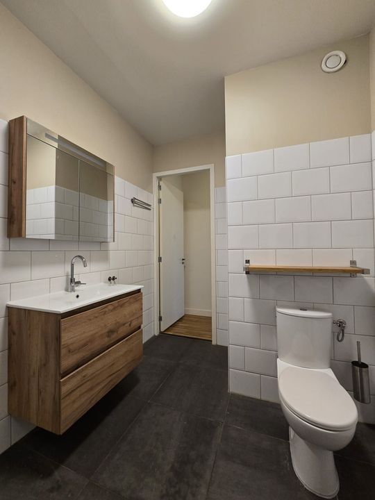 Nieuw toilet met fontein, nieuwe badkamer met douche, wastafelmeubel, tweede toilet en wasmachineaansluiting.